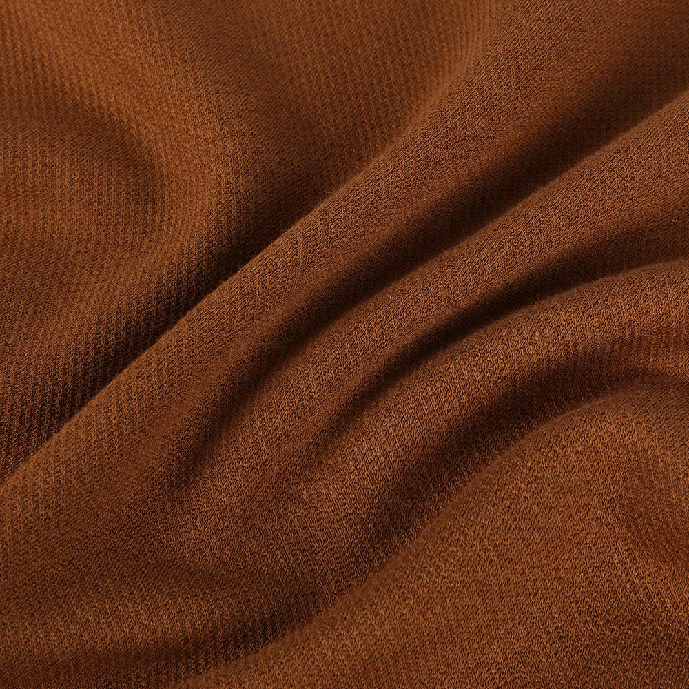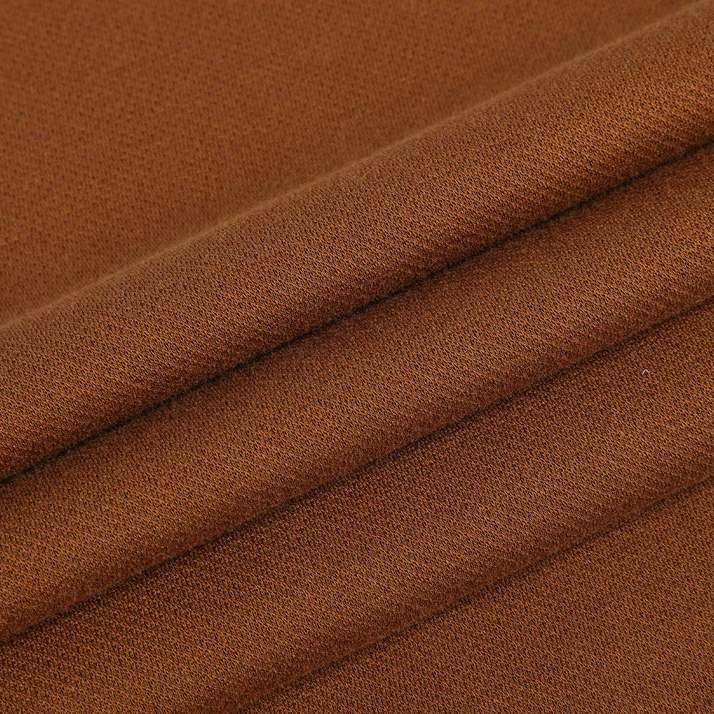 Interlock double-sided jacquard komportableng spandex niniting na tela para sa mga kababaihan ay nakamit ang dalawahan na pag-optimize ng pagganap ng tela at aesthetics sa pamamagitan ng maingat na proporsyon at advanced na teknolohiya. Ang komposisyon ng tela ay binubuo ng 54% na koton, 39% polyester, at 7% na balot na balot ng brocade, at ang pagsasama ng tatlo ay nagbibigay ng mga natatanging pakinabang sa pagganap ng tela. Ang koton, bilang isang natural na hibla, ay nagbibigay ng mahusay na pagsipsip ng kahalumigmigan, paghinga, at pagiging kabaitan ng balat, tinitiyak ang kaginhawaan kapag nakasuot. Ang pagdaragdag ng polyester ay nagpapabuti sa paglaban ng pagsusuot ng tela, paglaban ng wrinkle, at nababanat na pagbawi, na ginagawang mas madaling alagaan ang damit at mas malamang na magpapangit. Ang disenyo ng spandex na nakabalot ng brocade ay hindi lamang nagpapanatili ng mahusay na pagkalastiko ng spandex ngunit epektibong pinipigilan din ang pagkakalantad ng spandex, higit pang pagpapabuti ng tibay at morphological na katatagan ng tela. Sa mga tuntunin ng pagkakayari, ang paggamit ng advanced na dobleng panig na teknolohiya ng Jacquard ay ginagawang ang mga tela na nagpapakita ng mga katangi-tanging pattern sa magkabilang panig, pagpapahusay ng visual layering. Ang maselan na istraktura ng pagniniting ay nagbibigay sa tela ng mahusay na pag-agas at paghinga, maaaring umangkop sa mga pagbabago sa curve ng katawan ng tao, at nagbibigay ng isang angkop ngunit hindi masikip na karanasan. Kasabay nito, ang masikip na pag -aayos ng niniting na istraktura ay nagpapabuti din sa pagpapanatili ng init ng tela, na ginagawang angkop para sa pagsusuot sa iba't ibang mga klimatiko na kondisyon.