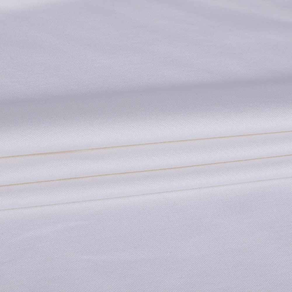 Ang dobleng pique moisture wicking at mabilis na pagpapatayo ng sutla na koton at polyester panlabas na paglilibang sa sports ay pinagsasama ang tatlong mga materyales: sutla, polyester, at koton. Sa pamamagitan ng mga pang -agham na proporsyon, ang pagganap ng tela ay na -optimize. Partikular, ang 36% na sangkap na sutla sa tela ay nagbibigay ng nagsusuot ng mahusay na regulasyon ng temperatura at karanasan sa ginhawa sa natural na maselan na pagpindot, mahusay na pagsipsip ng kahalumigmigan, at paghinga. Ang pagdaragdag ng sutla ay hindi lamang nagpapabuti sa texture ng tela ngunit pinapahusay din ang pagiging kabaitan ng balat at tibay nito. Kasabay nito, ang 34% na sangkap ng polyester, na may mahusay na paglaban sa pagsusuot, paglaban ng kulubot, at mabilis na pagganap ng pagpapatayo, tinitiyak na ang tela ay nagpapanatili ng mahusay na tibay at pagiging praktiko sa panahon ng pangmatagalang mga aktibidad sa labas. Ang mabilis na pagpapatayo ng mga katangian ng polyester ay maaaring epektibong sumipsip at magkalat ng pawis, mapabilis ang proseso ng pagsingaw, at maiwasan ang kakulangan sa ginhawa na dulot ng akumulasyon ng pawis sa panahon ng ehersisyo. Bilang karagdagan, ang 30% na sangkap ng koton, na may natural na pagsipsip ng kahalumigmigan at paghinga, ay nagdadala ng isang mas balanseng karanasan sa ginhawa sa tela. Ang pagdaragdag ng cotton fiber ay karagdagang nagpapabuti sa paghinga at lambot ng tela, na nagpapahintulot sa nagsusuot na makaramdam ng mas nakakarelaks at komportable sa panahon ng ehersisyo. Ang disenyo ng istraktura ng dobleng mesh ay nagbibigay-daan sa tela upang mapanatili ang paghinga habang mayroon ding mahusay na pagkalastiko at pagbawi. Ang istraktura na ito ay hindi lamang nagpapabuti sa tibay ng tela ngunit pinapayagan din itong mapanatili ang orihinal na hugis at texture pagkatapos ng maraming paghugas.
